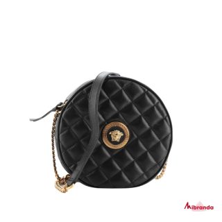 Bolso bandolera redonda, negro, con medusa, de Versace. K11349