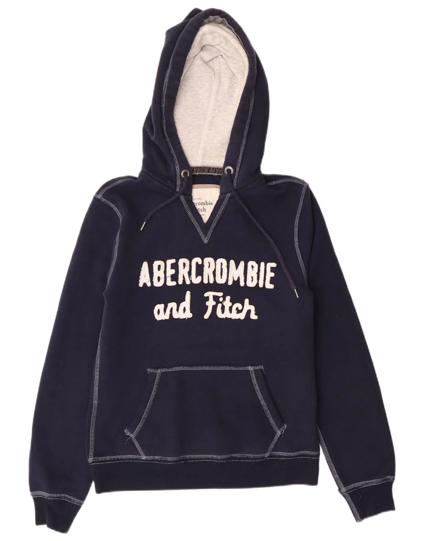 ABERCROMBIE & FITCH Jersey con capucha gráfico para mujer UK 14 Medium Azul marino