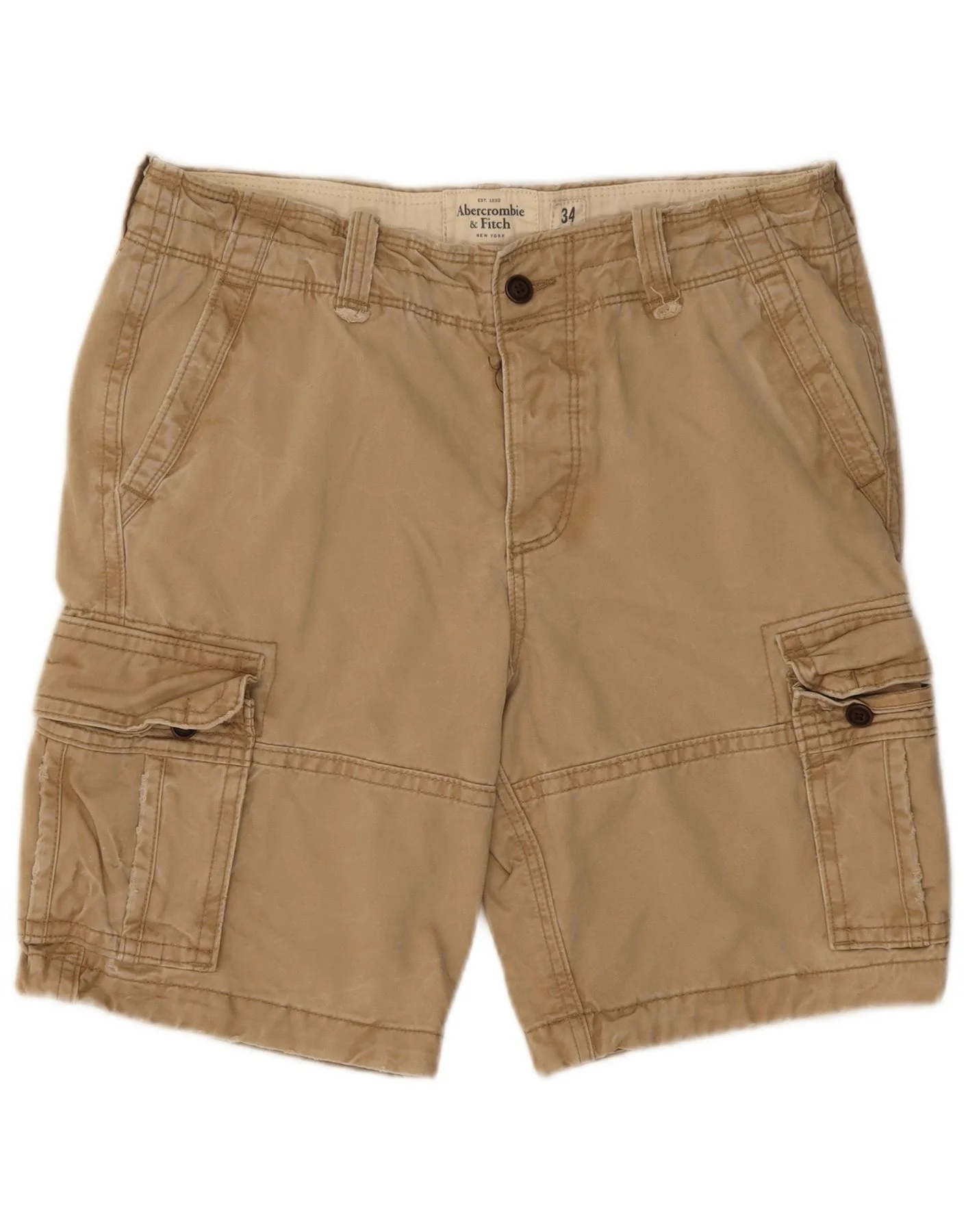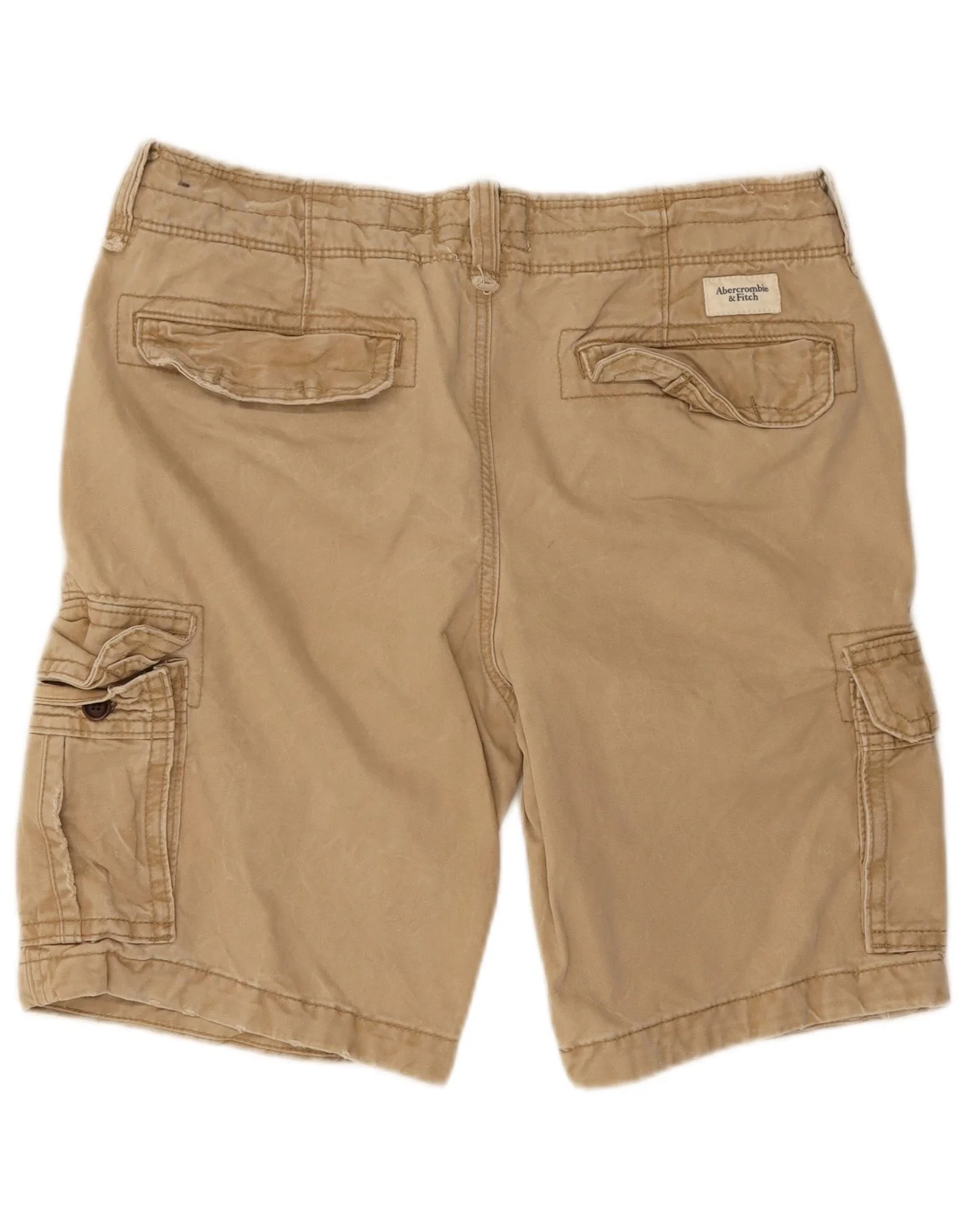 ABERCROMBIE & FITCH Mens Distressed Cargo Shorts W34 Large Beige Cotton