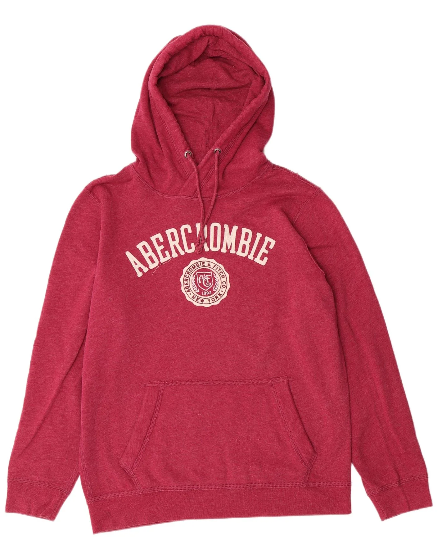 ABERCROMBIE & FITCH Mens Graphic Hoodie Jumper Medium Pink Cotton
