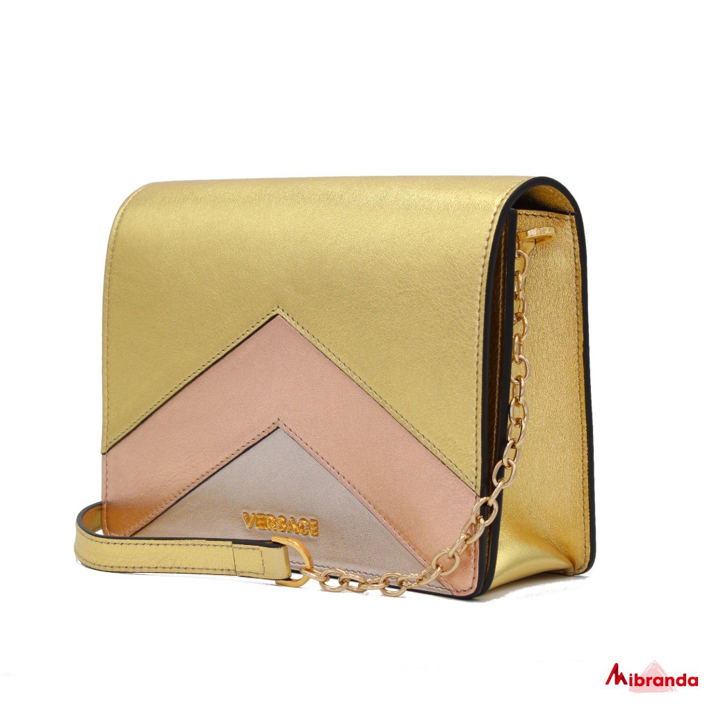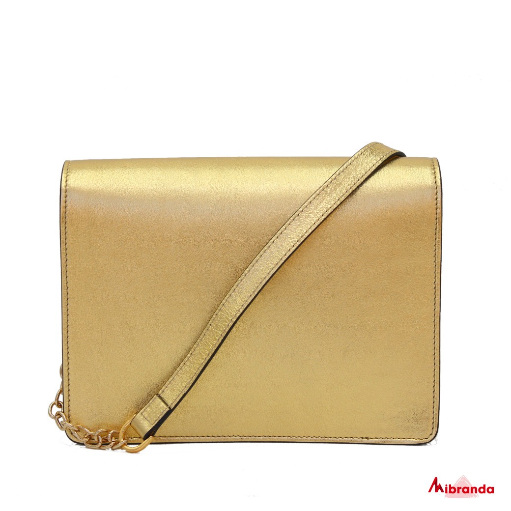 Asa en piel dorada con detalle de cadena dorada.