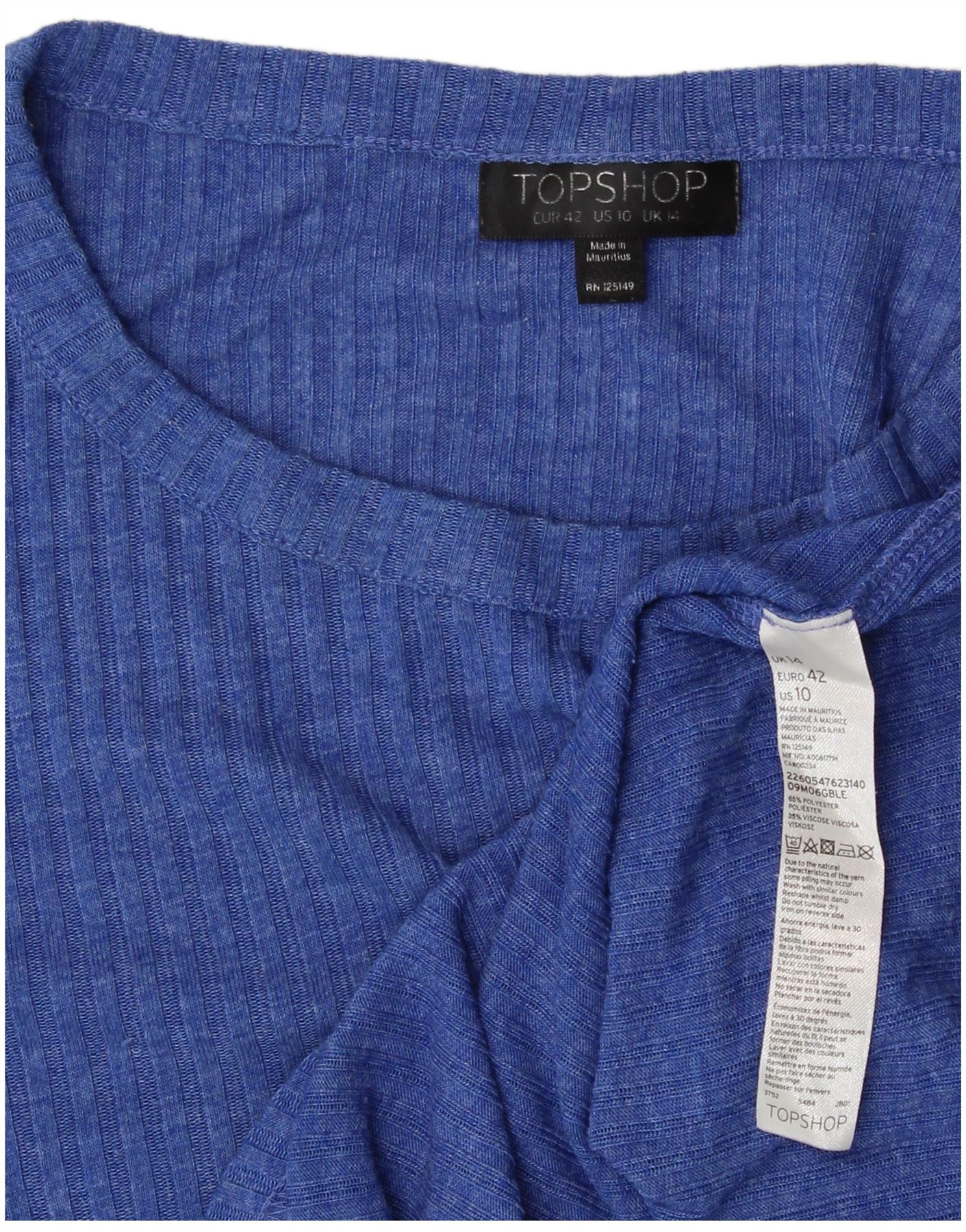 Camiseta corta TOPSHOP para mujer, talla 14 (Reino Unido), azul, poliéster