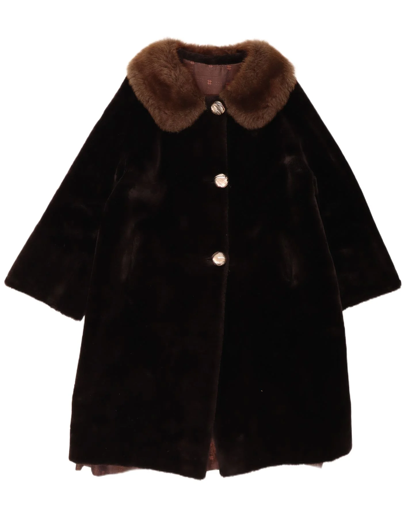 VINTAGE Womens Faux Fur Overcoat UK 16 Large Brown Colourblock